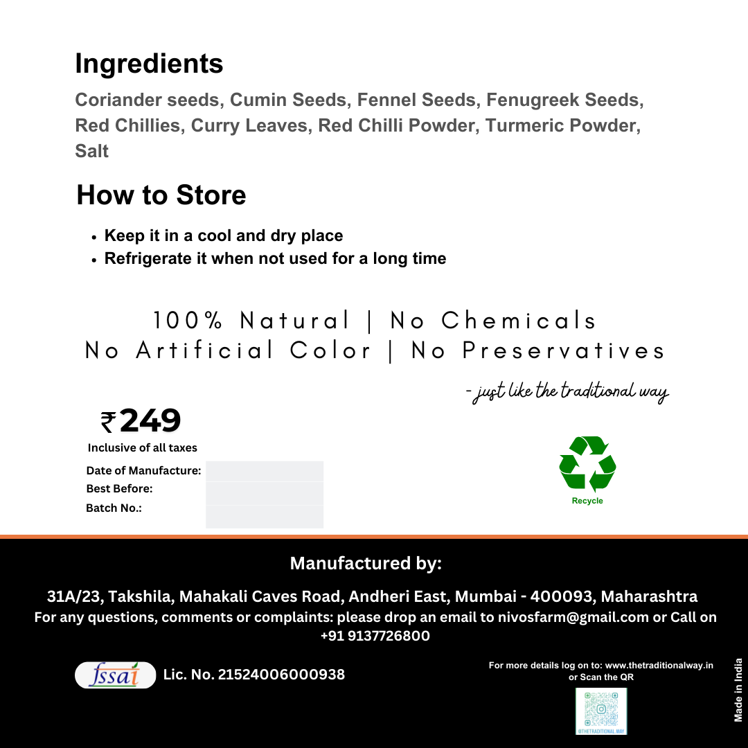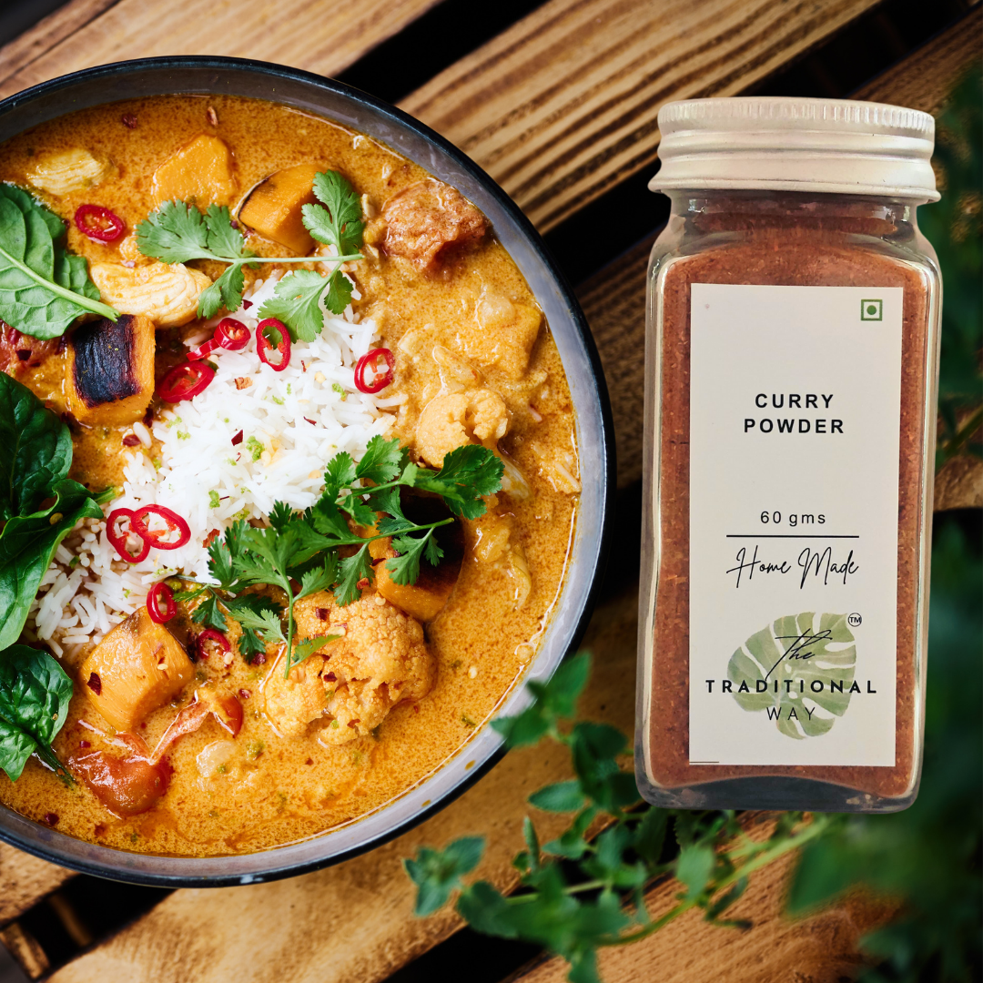 The Traditional Way’s 100% Natural Curry Powder is a flavorful and aromatic spice blend that brings the rich, authentic taste of Indian cuisine to your table. Crafted from a careful combination of premium spices, this curry powder is free from additives, preservatives, or artificial ingredients, ensuring a pure and authentic flavor in every dish. Perfect for curries, stews, soups, vegetables, rice dishes, and marinades, it offers a warm, mildly spicy flavor with a hint of earthy depth.